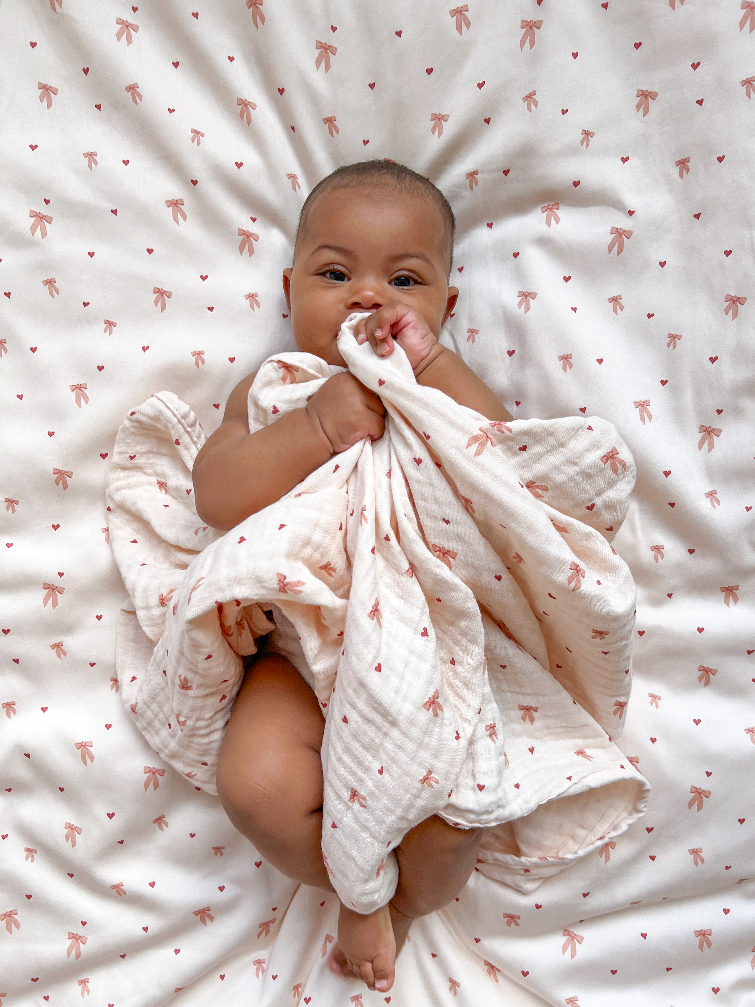 Χάρη στο πλεκτό σχέδιο, έχει μαλακή υφή και εξαιρετική κυκλοφορία του αέρα. Φτιαγμένη από 4 στρώσεις 100% οργανικό βαμβάκι και υπέροχους παλ χρωματισμούς, είναι ιδανική για βόλτες, αγκαλιές και χουχούλιασμα!