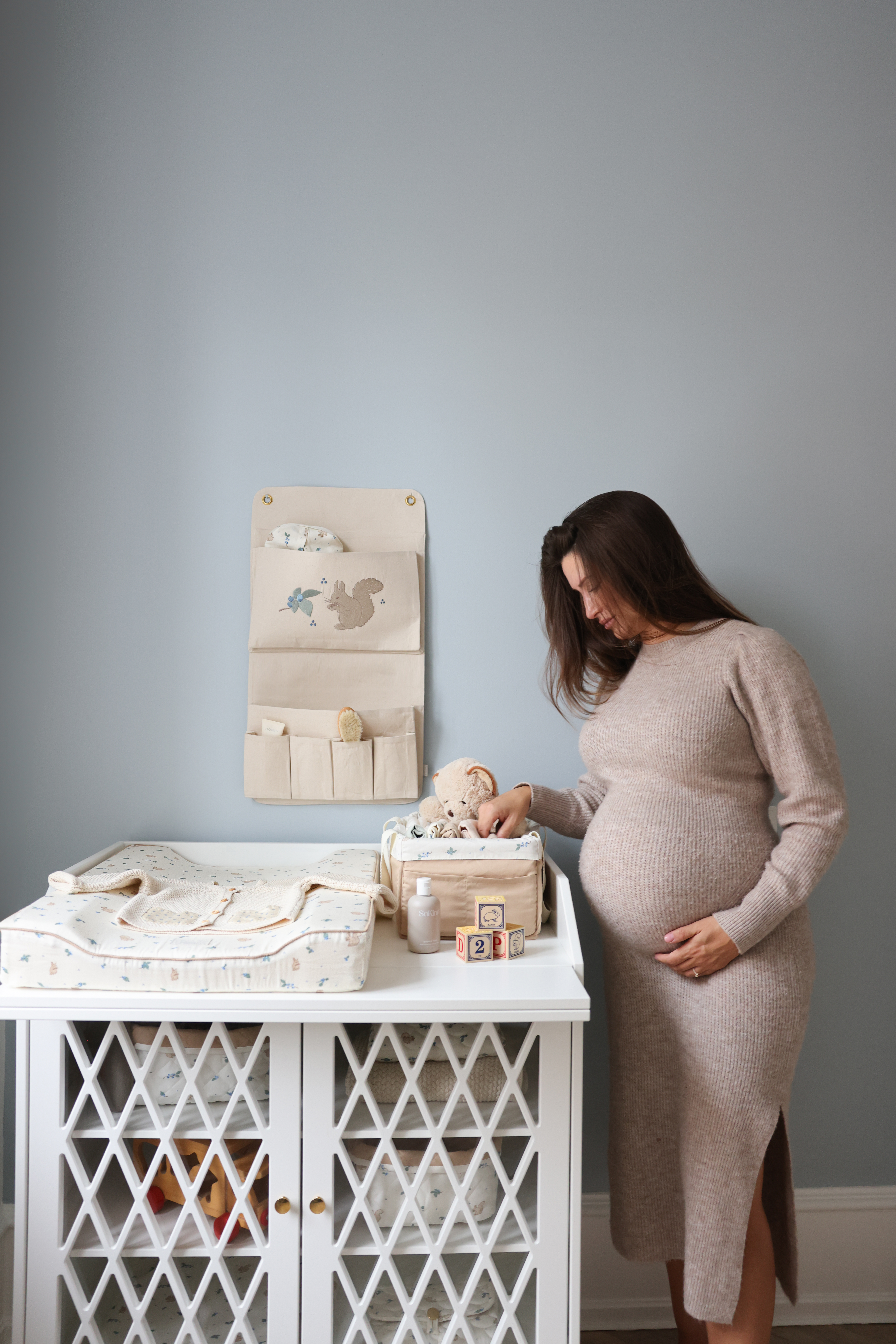 Πρακτική και όμορφη θήκη κρεβατιού για προσάρτηση στην κούνια για να έχετε κοντά σας κούκλες, βιβλία