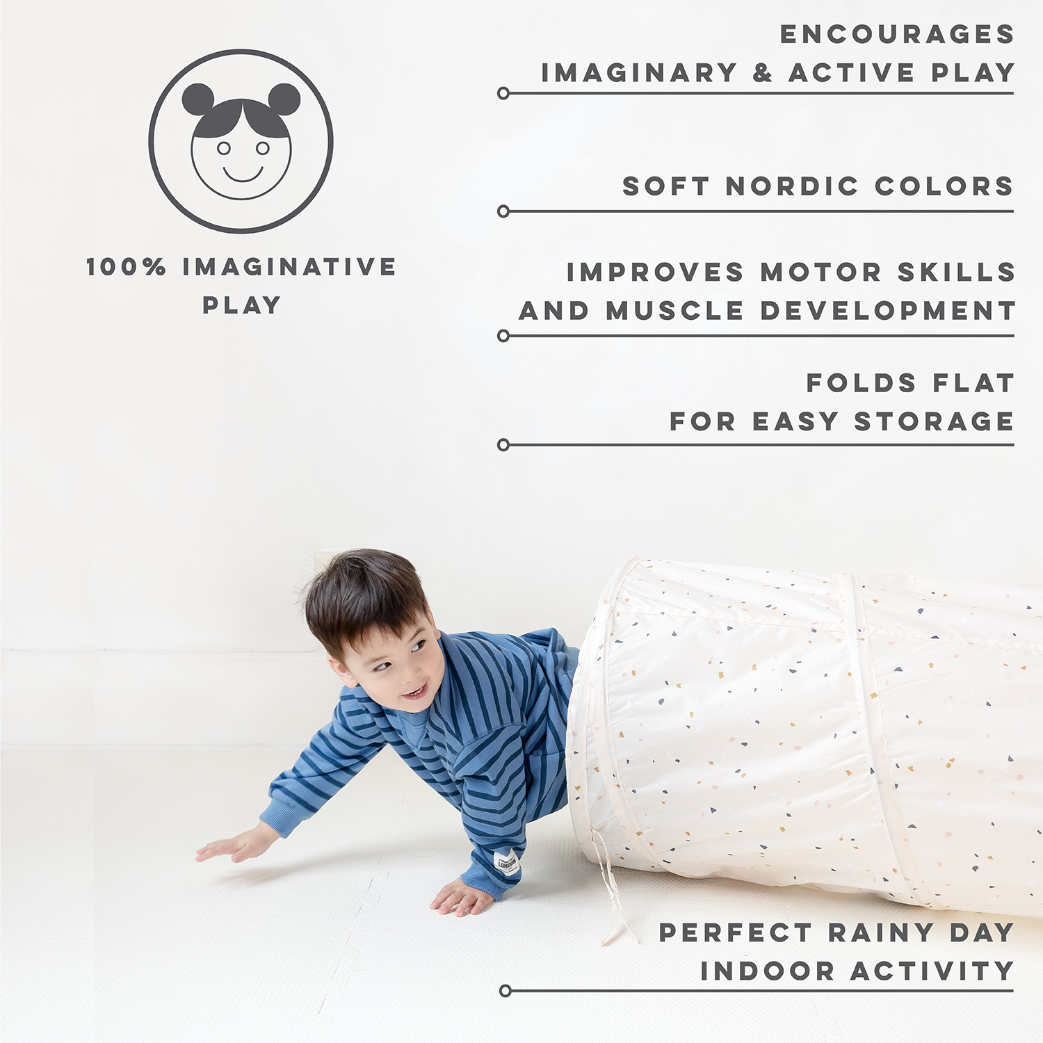 3Sprouts | Play Tunnel |Τούνελ Παιχνιδιού από ανακυκλωμένο ύφασμα Terazzo Beige